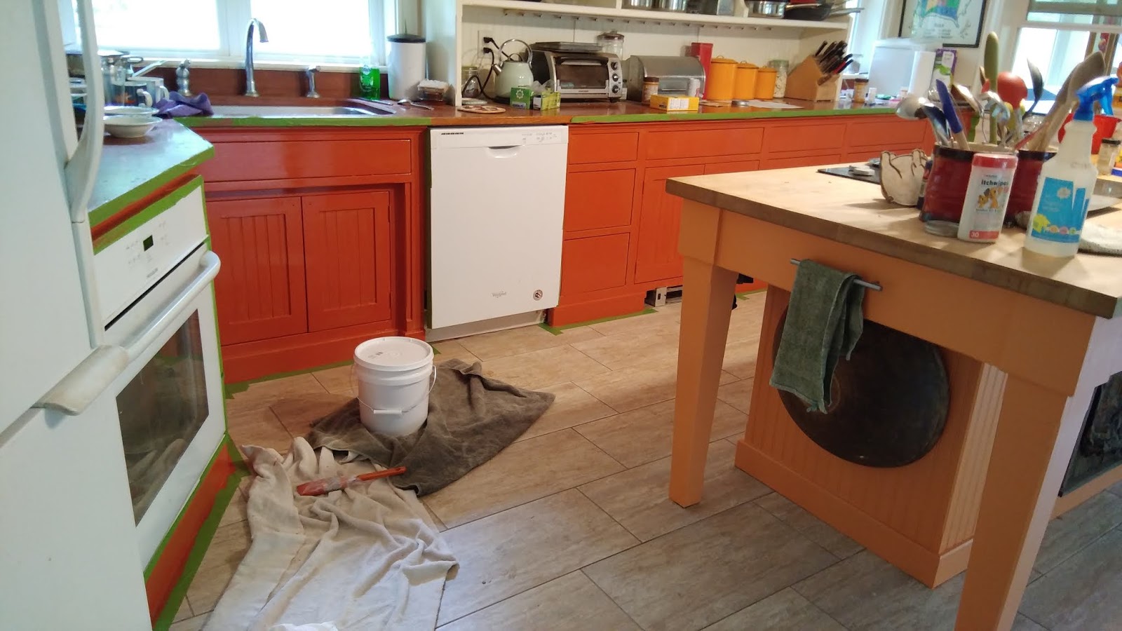 the lower cabinets are getting their second coat of paint today and then hopefully we'll get the dang hardware back on!